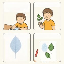 يتم جمع الأوراق المستخدمة مع الأطفال، ويُطلب منهم مطابقة كل ورقة بطباعتها. هذا النشاط يساعد على تعزيز مهارة الملاحظة والتركيز، ويشجع الأطفال على التعرف على تفاصيل الطبيعة من حولهم.